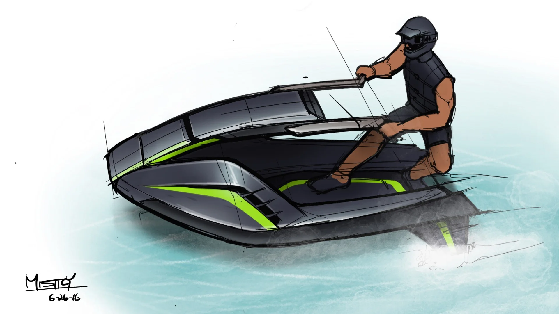 This one was sketched on an iPad with Procreate. I really like the looseness of this sketch as well as playing around with the texture brushes to get the water effect.